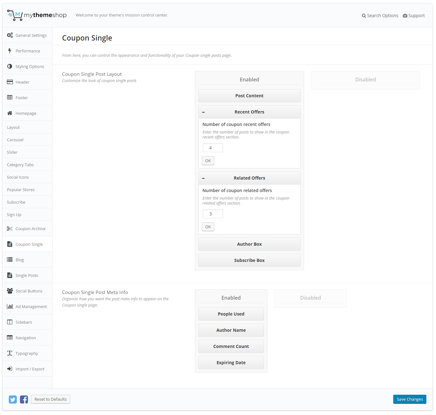 • Single Post Settings